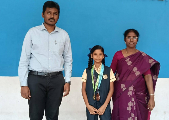 Karshini of Class VIII participated in the State Level Skating Competition held at Karur and won a Gold and a Bronze Medal