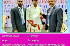 S. AARYA - XII std 1st PLACE IN STATE LEVEL KARATE CHAMPIONSHIP AND HAS BEEN SELECTED FOR NATIONAL LEVEL REPRESENTING TAMILNADU